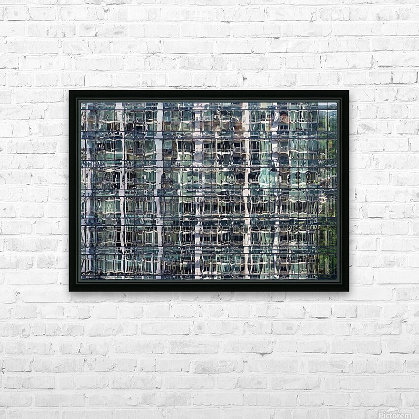 Reflections of condominium tower in windows of apartment buildin Picture Frame Printing