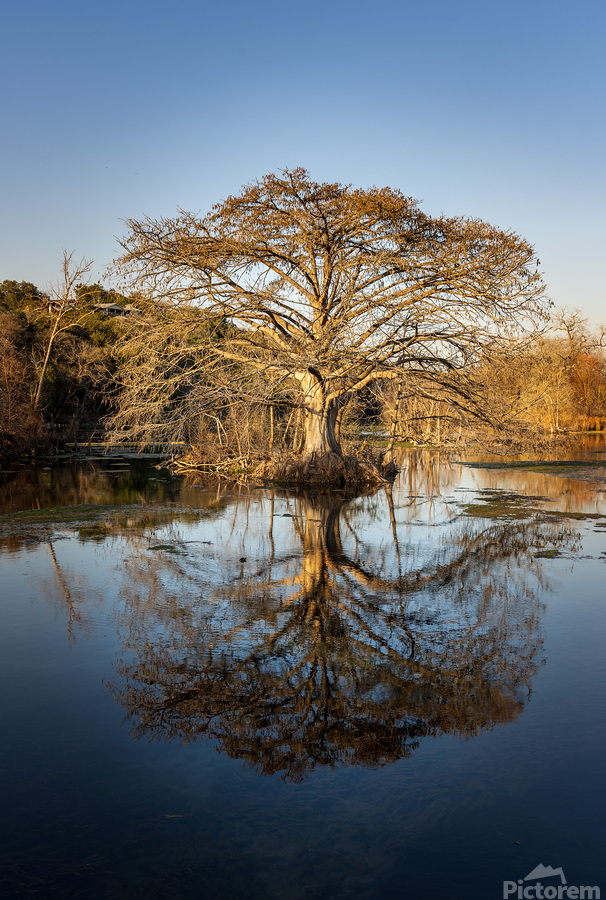 ABOUT THIS ARTWORK: LARGE CYPRESS TREE IN COMAL RIVER IN LANDA PARK NEW BRAUNFELS IN