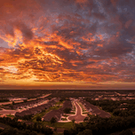 ABOUT THIS ARTWORK: DRAMATIC SUNSET SEEN FROM DRONE OVER GEORGETOWN TEXAS RESIDENTIA