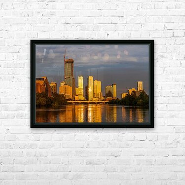 Get this artwork "Waterline dominates city skyline of Austin Texas at sunset in 20" in a framed print.
