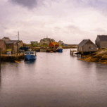 Digital oil painting of impressions of the harbour of Peggys Cove near Halifax in Nova Scotia Canada