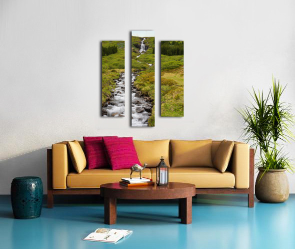 Waterfall in Tunhudalur valley near Isafjordur Iceland with lupi Canvas print