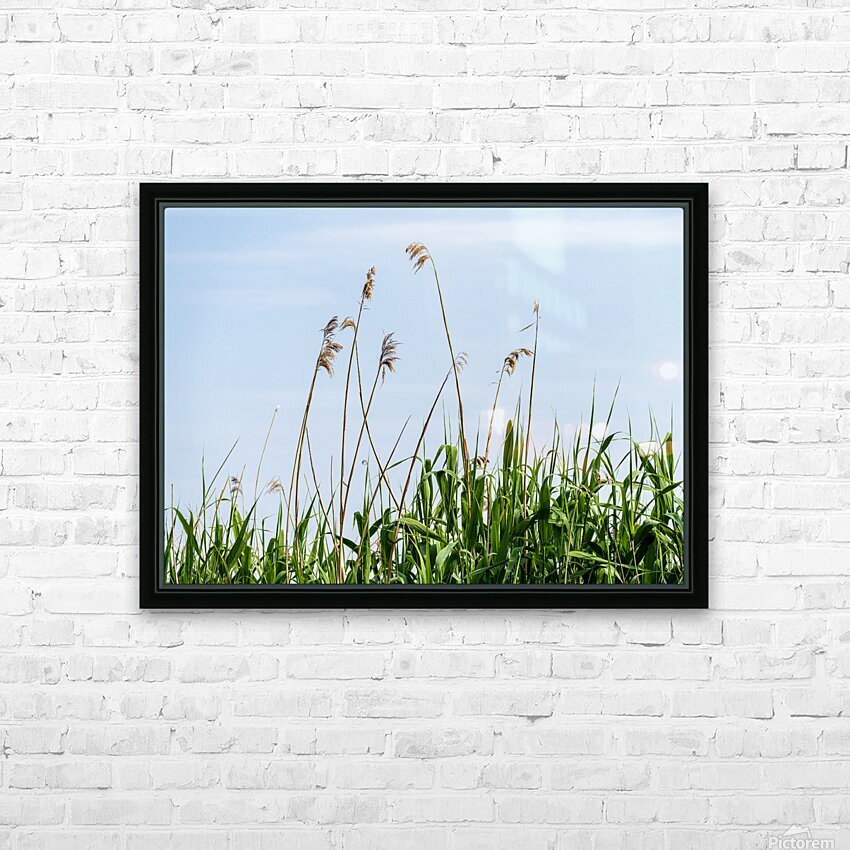 Tall reeds and green grasses sway gently against a light blue sk Picture Frame Printing