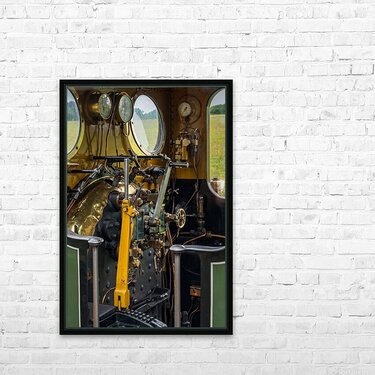Detail of the driver cabin and controls on an old steam locomoti Picture Frame Printing