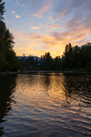 SUNRISE OVER WENATCHEE RIVER IN LEAVENWORTH WASHINGTON STATE
