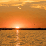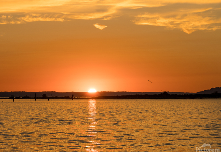 Dramatic scene as the sun sets over the islands at sunset off Everett in Possession Sound Washington State