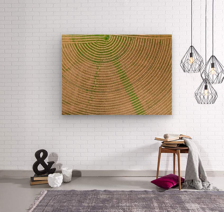 ABOUT THIS ARTWORK: CIRCULAR PATTERN OF CROPS IN FIELDS SEEN FROM DRONE NEAR WINTHRO
