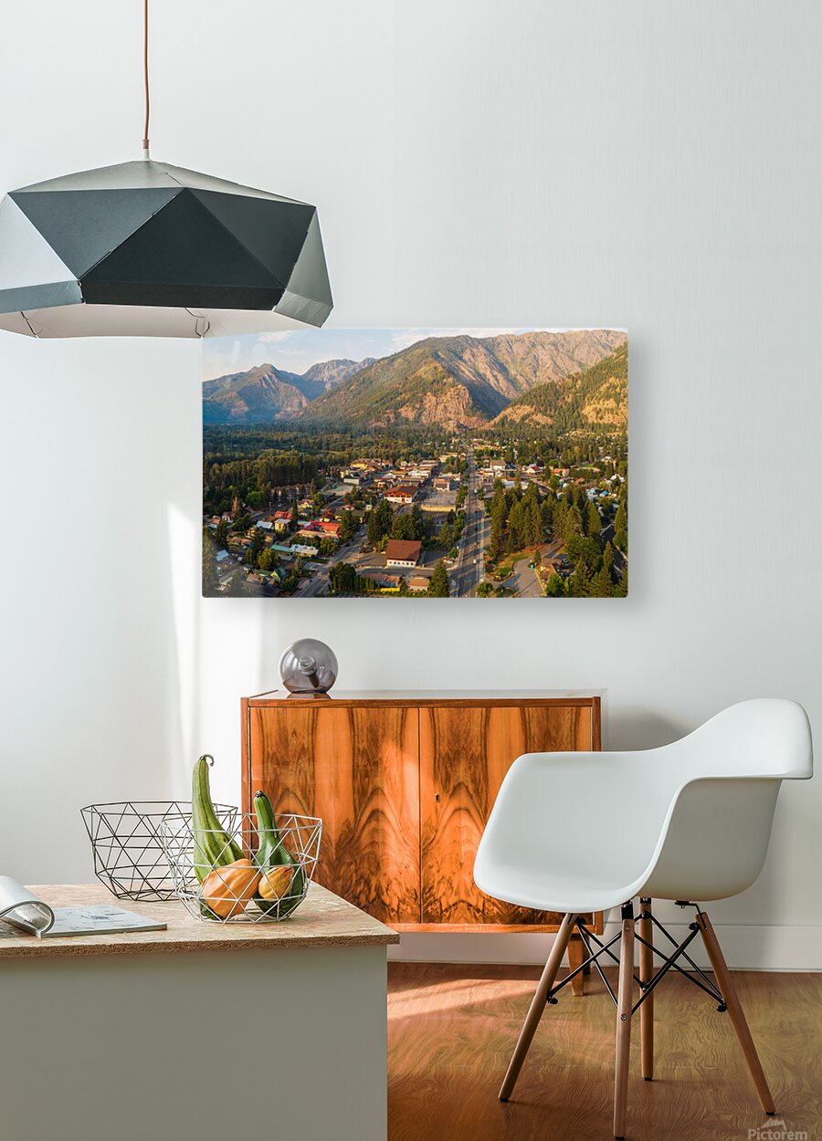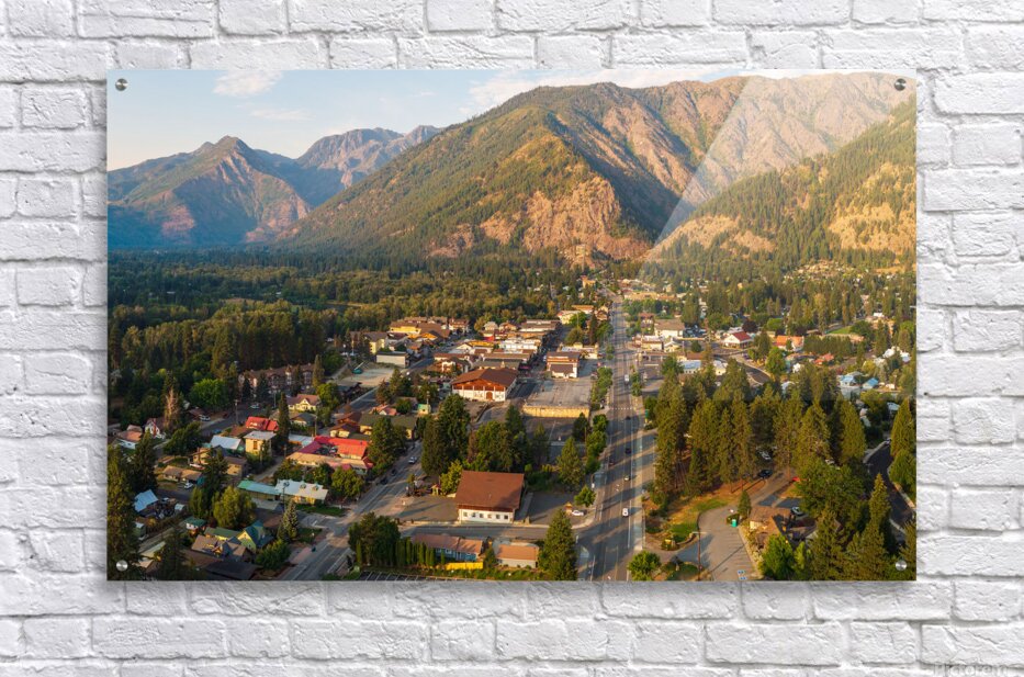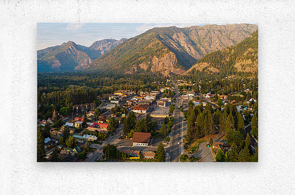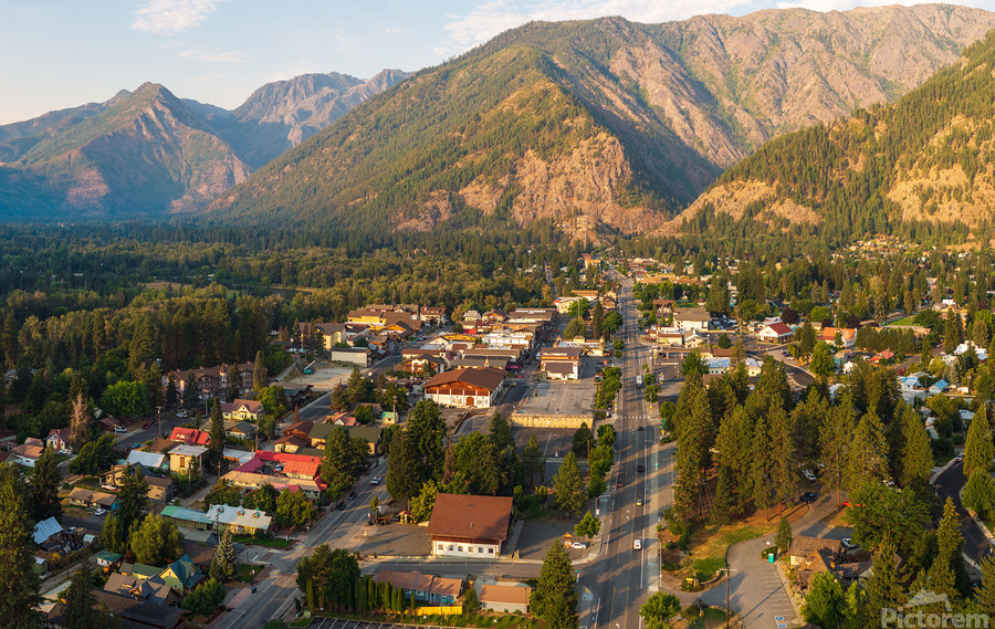 ABOUT THIS ARTWORK: AERIAL VIEW OF LEAVENWORTH THE BAVARIAN ALPINE VILLAGE IN CASCA
