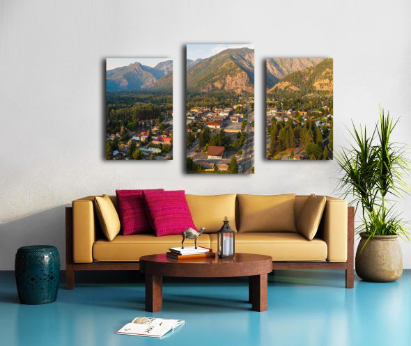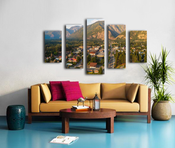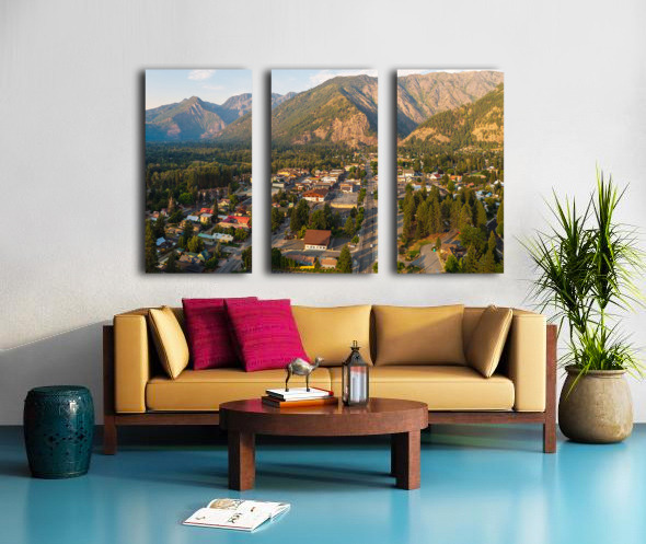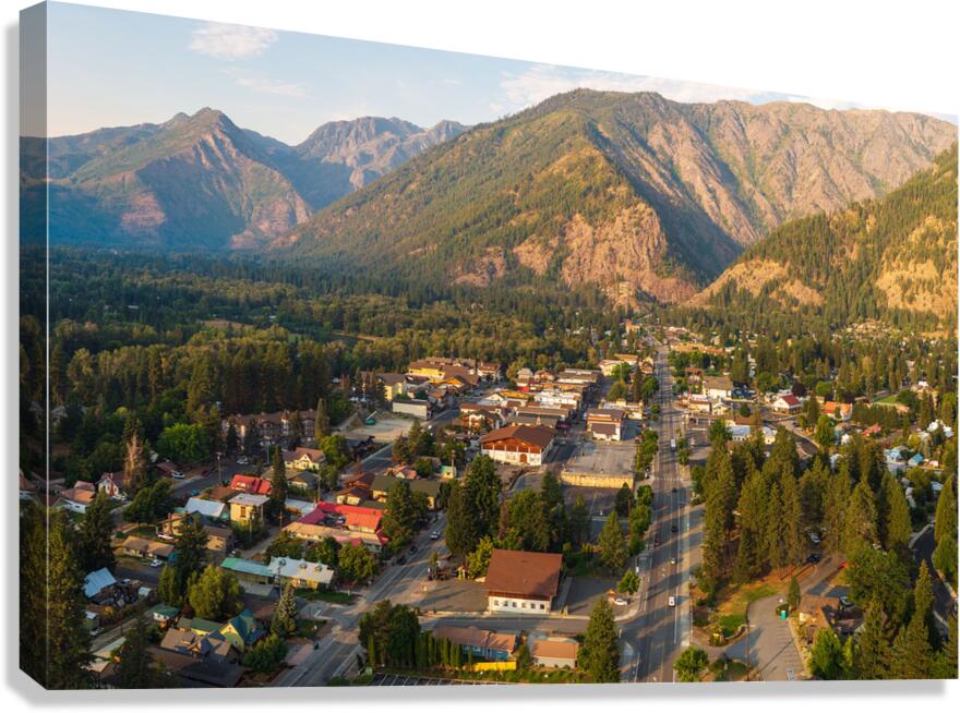 Aerial view of Leavenworth the Bavarian Alpine village in Casca Canvas print