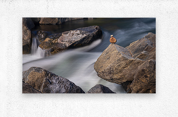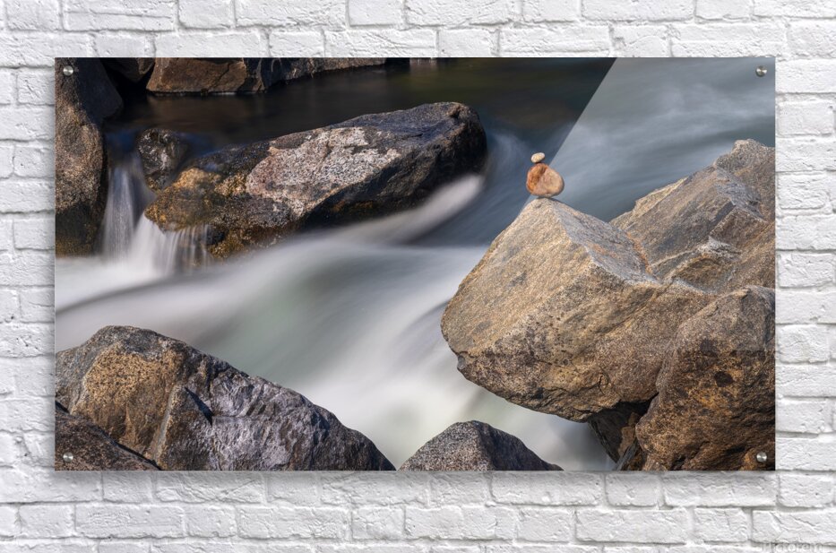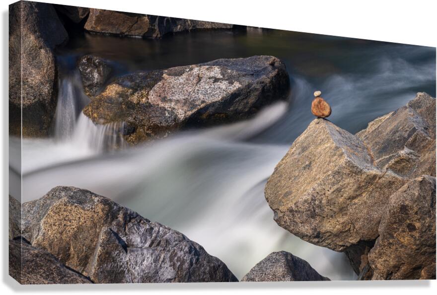 Get this artwork "Pebbles balanced on rocks in raging river illustrating resilienc" in a framed print.