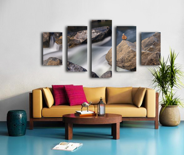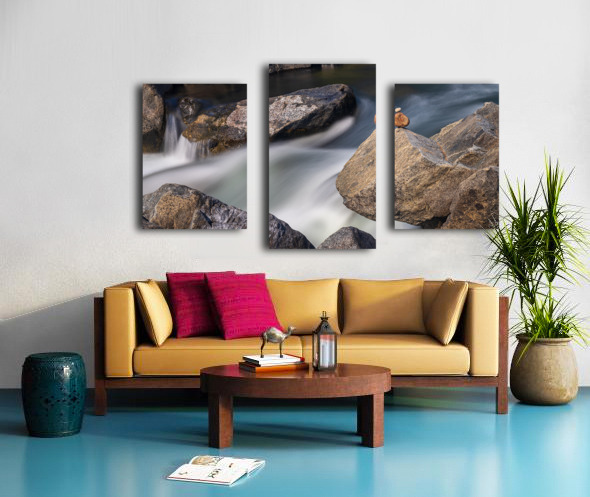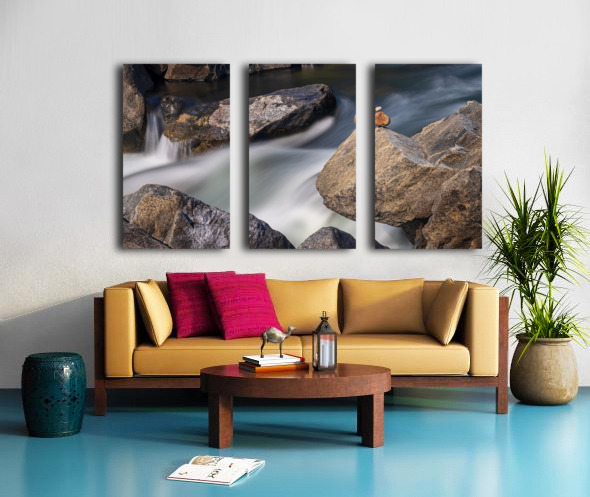 Pebbles balanced on rocks in raging river illustrating resilienc Canvas print