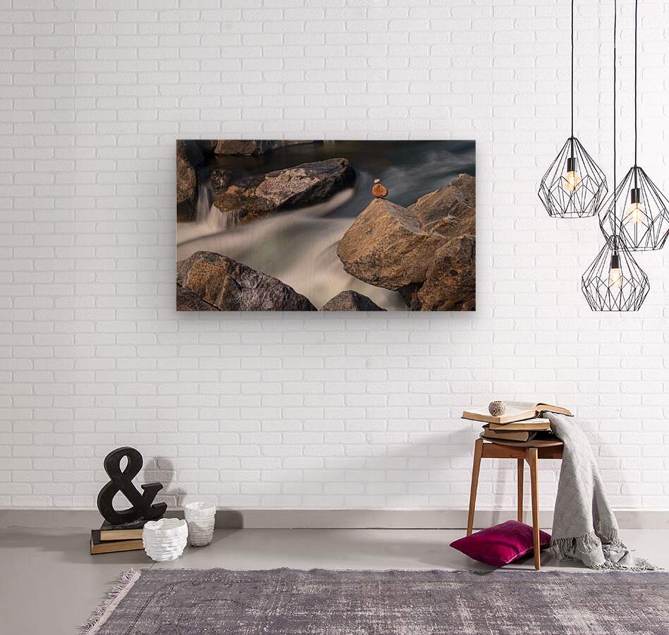 Get this artwork "Pebbles balanced on rocks in raging river illustrating resilienc" in a framed print.