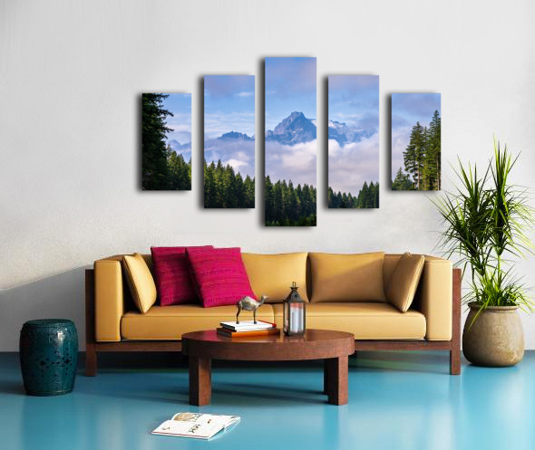 Whitehorse Mountain seen through rolling clouds and mist from Ro Canvas print