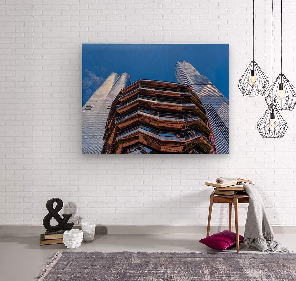 Get this artwork "Reflective surface of the Vessel with a skyscraper behind with c" in a framed print.