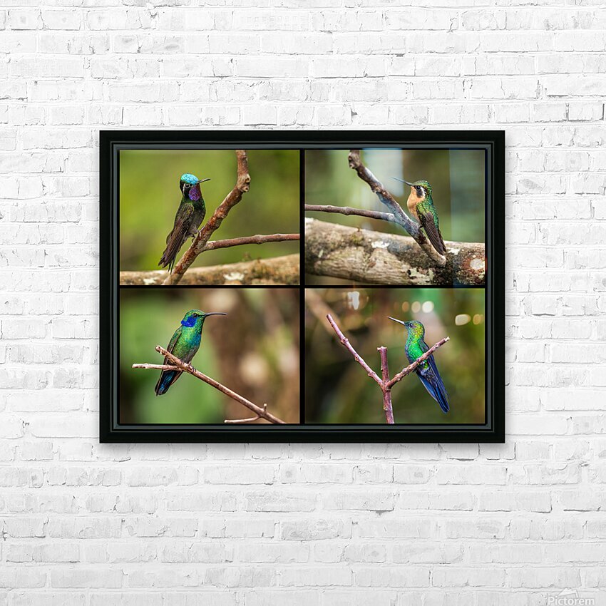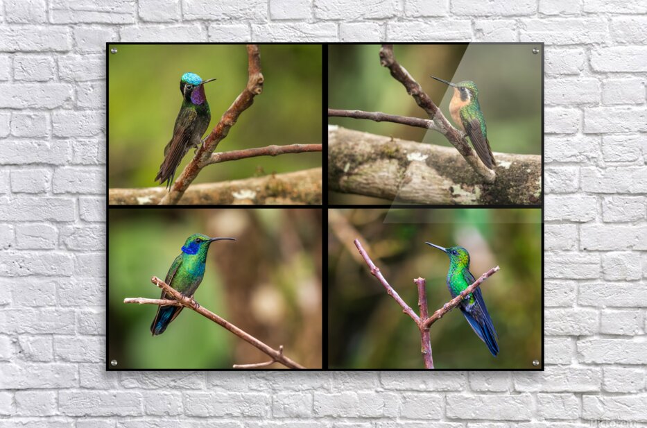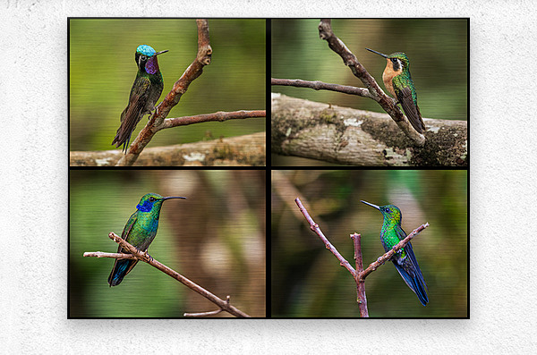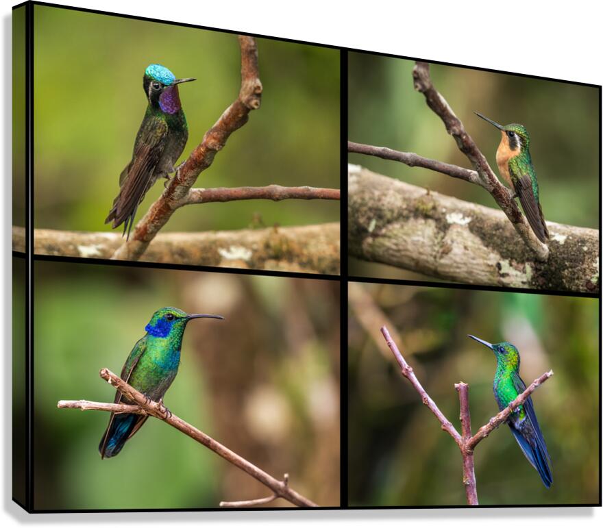 Get this artwork "Montage of four humming birds from Costa Rica" in a framed print.