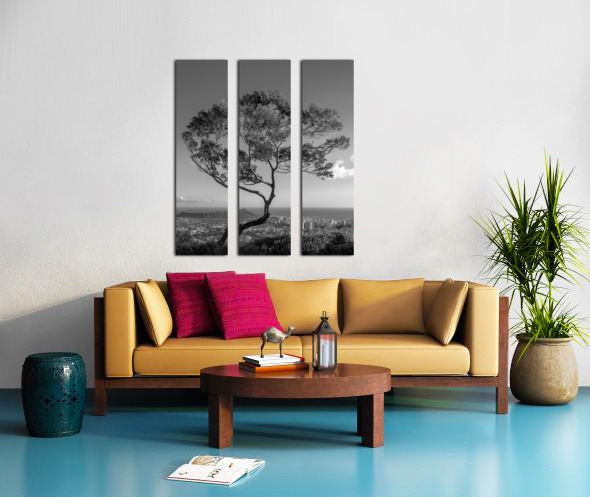 Solitary tree overlooks Waikiki in Black and White Canvas print