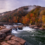 Valley Falls State Park near Fairmont in West Virginia on a colorful misty autumn day with fall colors on the trees