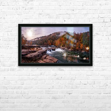 Panoramic Valley Falls on a misty autumn day Picture Frame Printing