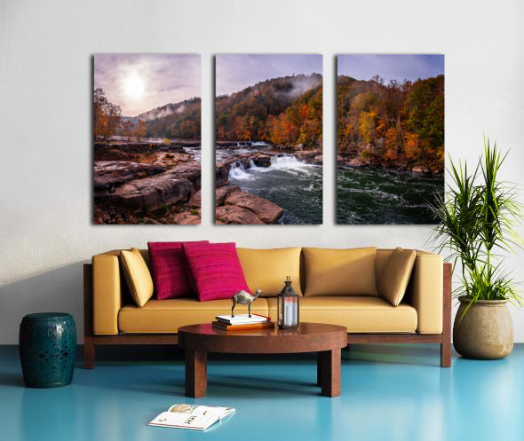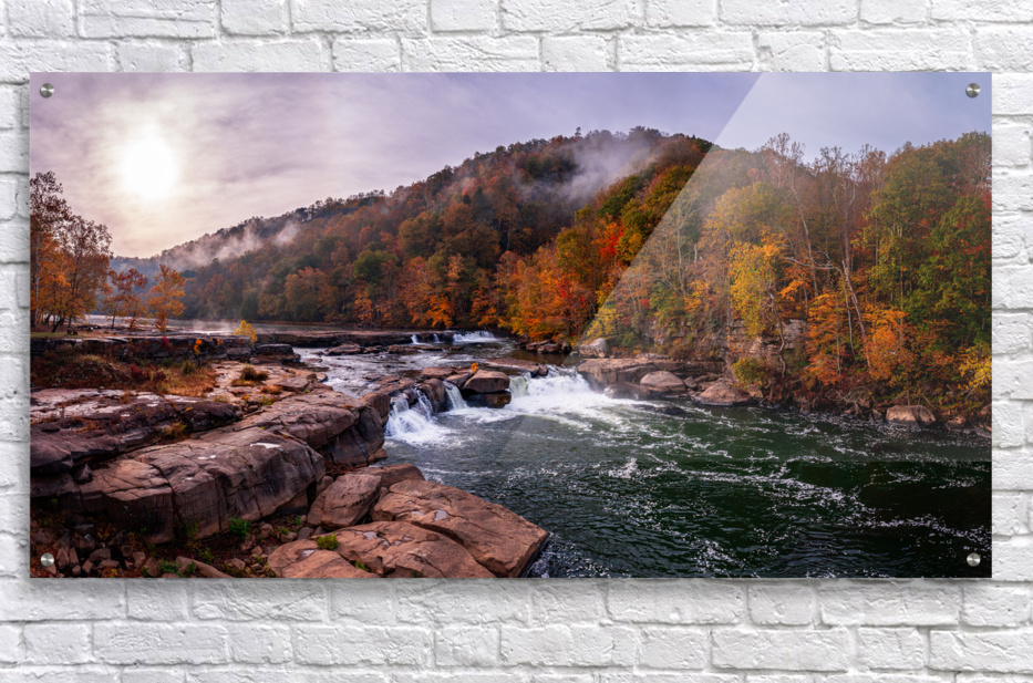 Get this artwork "Panoramic Valley Falls on a misty autumn day" in a framed print.