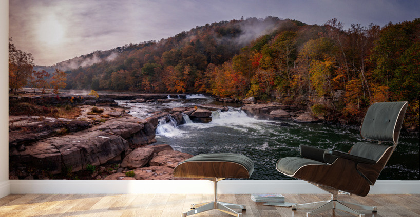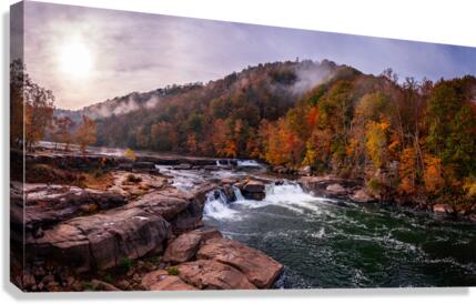 ABOUT THIS ARTWORK: PANORAMIC VALLEY FALLS ON A MISTY AUTUMN DAY