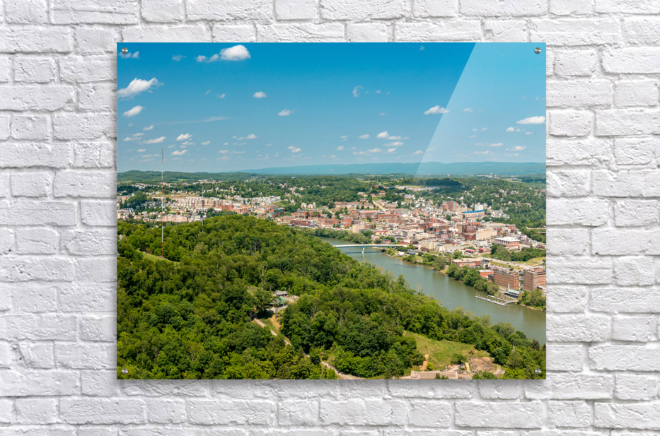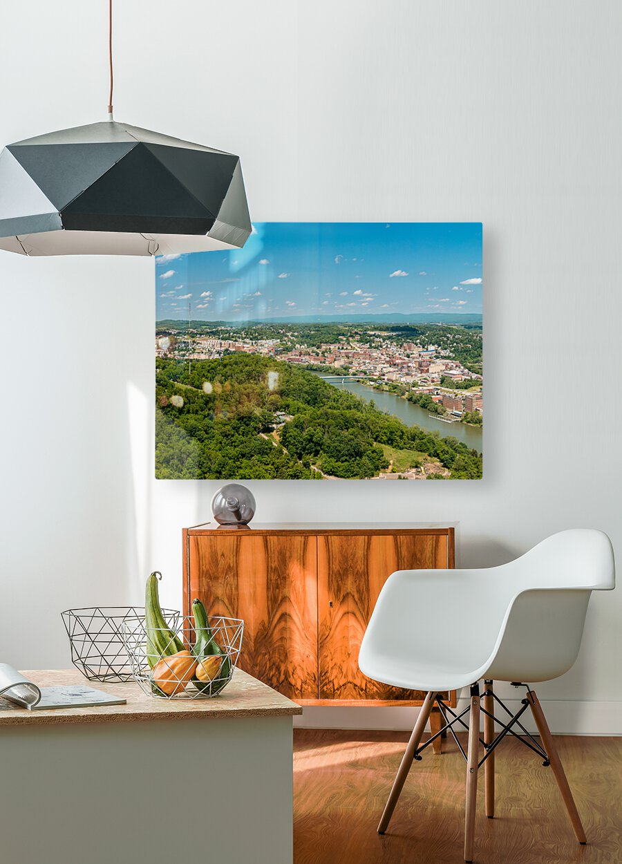 ABOUT THIS ARTWORK: AERIAL PANORAMA IMAGE OF THE DOWNTOWN AND UNIVERSITY IN MORGANTOWN