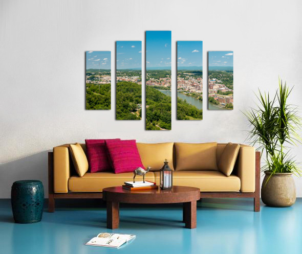 Aerial panorama image of the downtown and university in Morgantown Canvas print