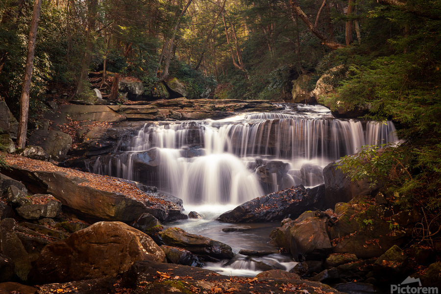 ABOUT THIS ARTWORK: WATER CASCADE ON DECKERS CREEK NEAR MASONTOWN WV
