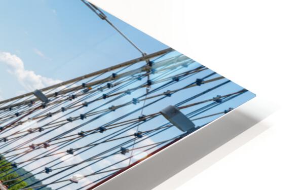 Metal structure of the old suspension bridge carrying the National Road across the Ohio river in Wheeling West Virginia