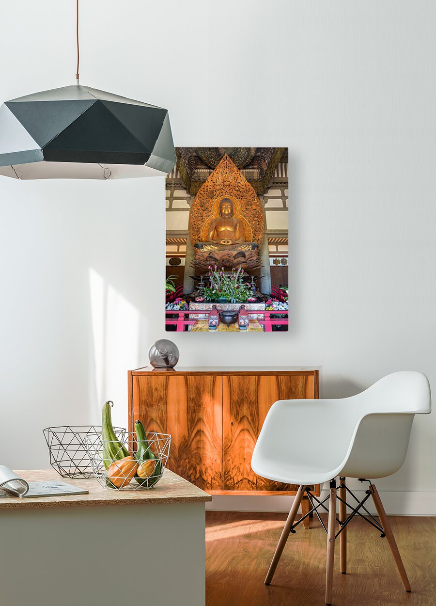ABOUT THIS ARTWORK: STATUE OF BUDDHA IN THE BYODO IN BUDDHIST TEMPLE ON OAHU, HAWAII