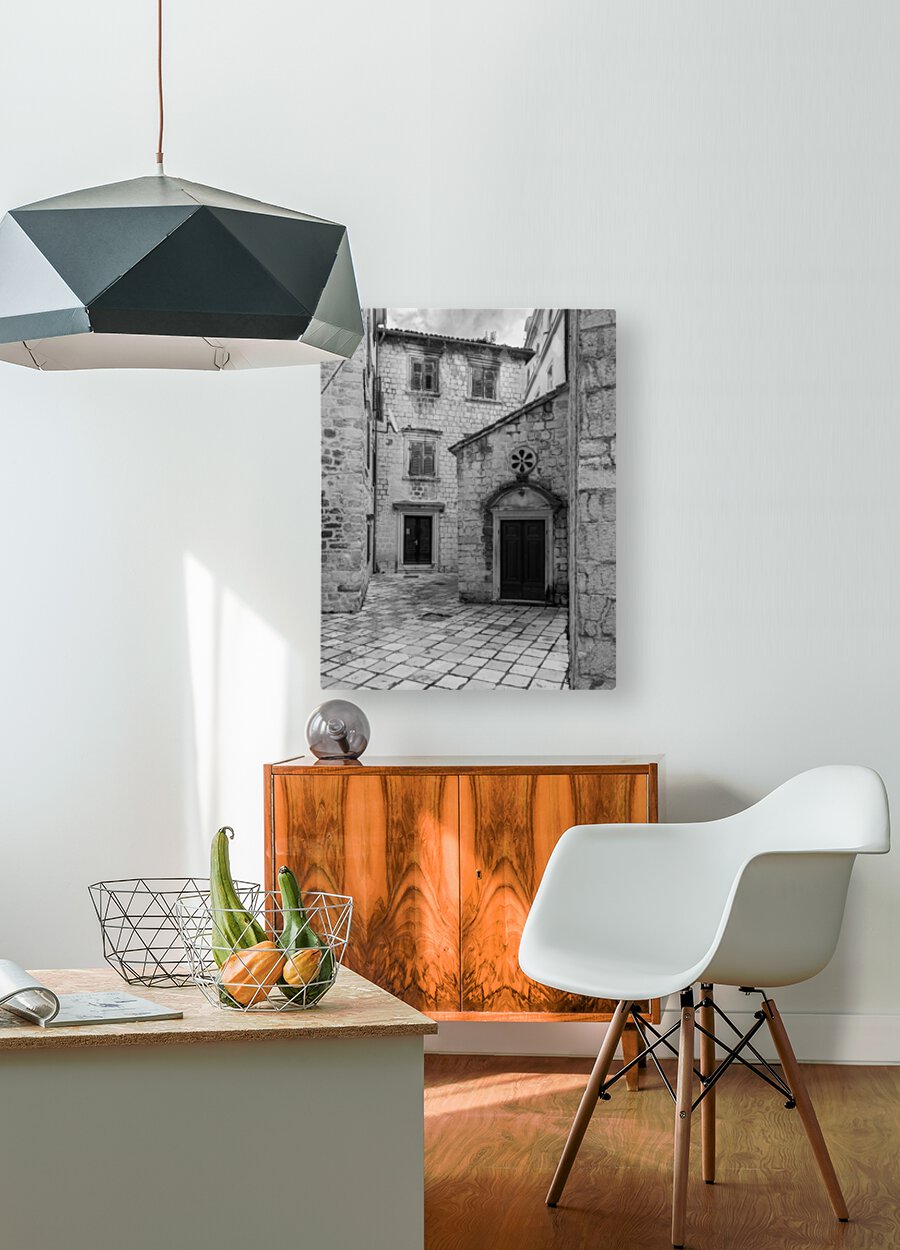 Get this artwork "Narrow streets in Kotor in black and white" in a framed print.