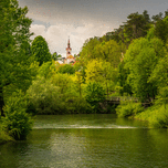 Church in the woods above peaceful river Steve Heap Puzzle