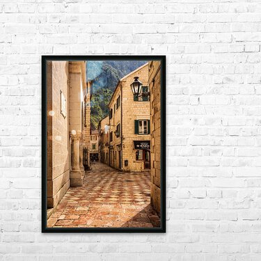 Narrow streets in Kotor in Montenegro Picture Frame Printing