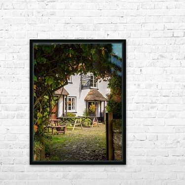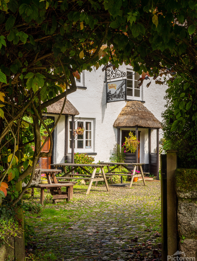 Get this artwork "Thatched pub garden in Lustleigh in Devon" in a framed print.