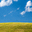 GREEN GRASSY LAWN WITH BLUE SKY AND CLOUDS