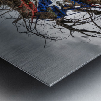 Painted Puerto Rico state flag on uprooted tree from Hurricane Maria in San Juan Puerto Rico.