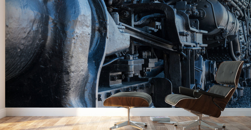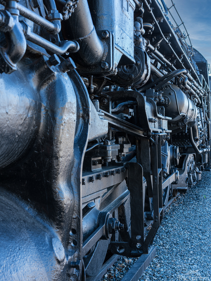 Detail of the black painted locomotive engine known as Santa Fe 5021 at California State Railroad Museum in Sacramento