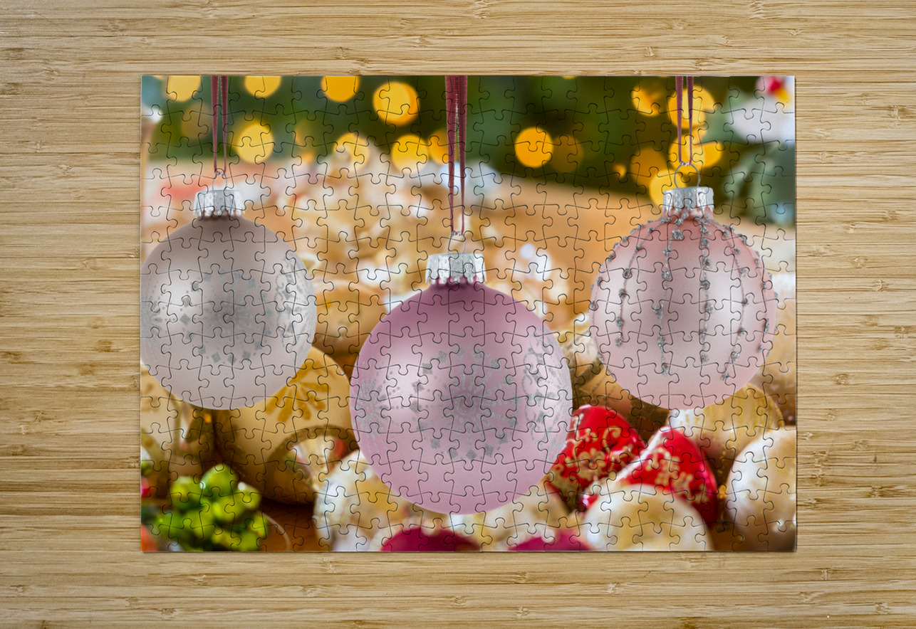 Three Christmas decorations on strings Steve Heap Puzzle printing