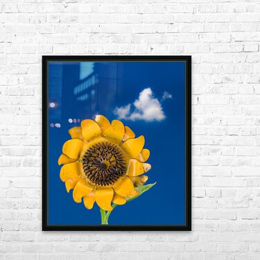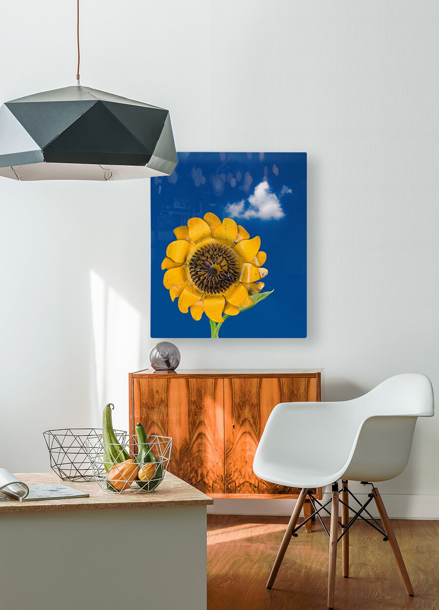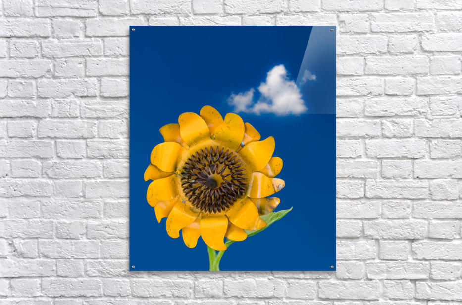 Get this artwork "Metal sunflower against blue sky" in a framed print.