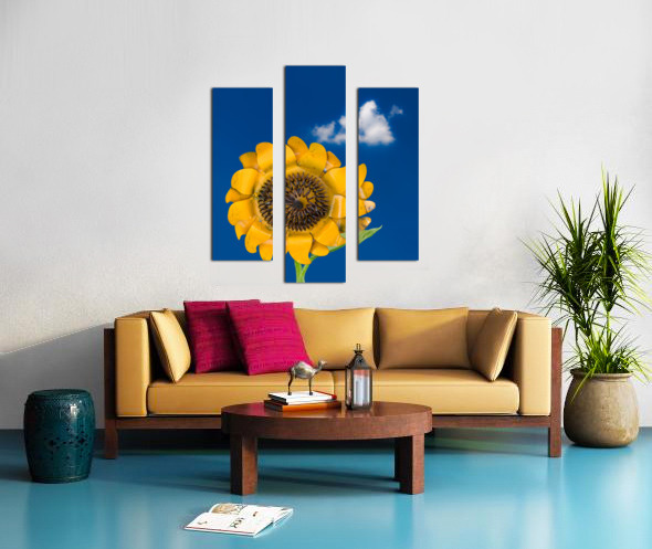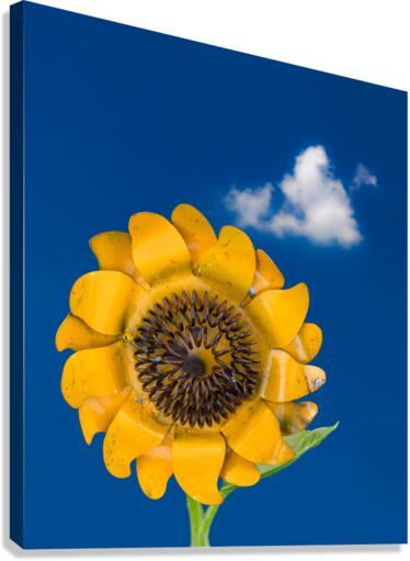 Metal sunflower against blue sky Canvas print