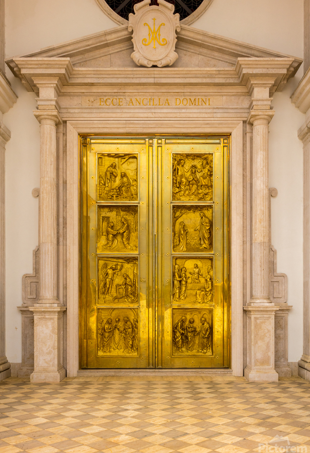 Gold doors Basilica of Mongomo in Equatorial Guinea Picture Frame Printing
