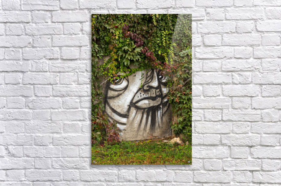 Get this artwork "Graffiti on wall of rock like face of cat" in a framed print.