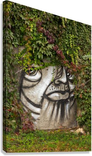 Graffiti on wall of rock like face of cat Canvas print