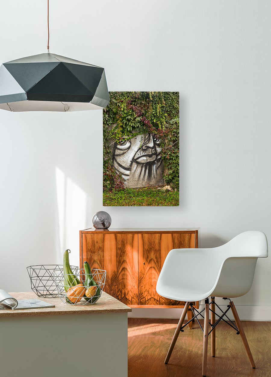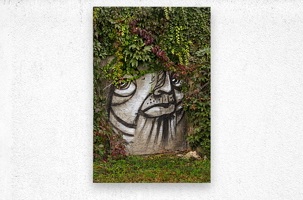 ABOUT THIS ARTWORK: GRAFFITI ON WALL OF ROCK LIKE FACE OF CAT