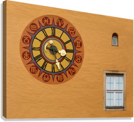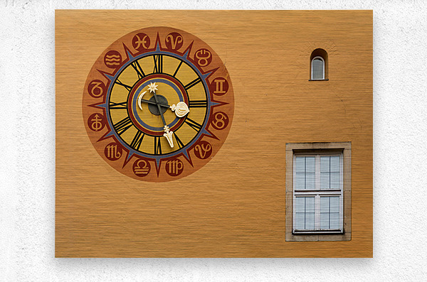Ancient clock face on wall in the medieval town of Regensburg Bavaria Germany