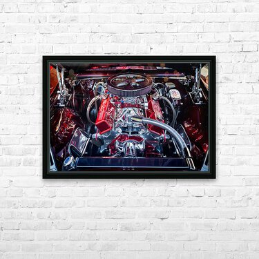 Get this artwork "Engine compartment of chromed Camaro" in a framed print.