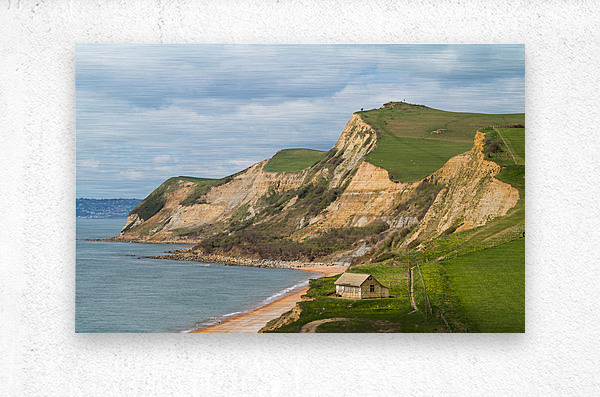 ABOUT THIS ARTWORK: COTTAGE BY CLIFFS AT WEST BAY DORSET IN UK