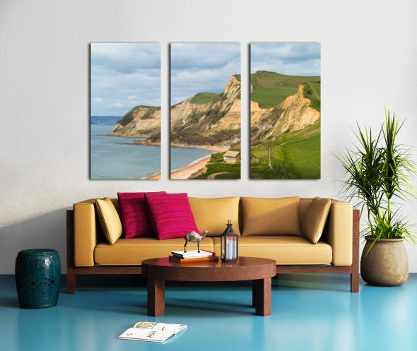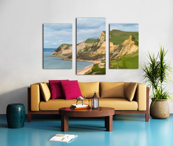 Cottage by cliffs at West Bay Dorset in UK Canvas print