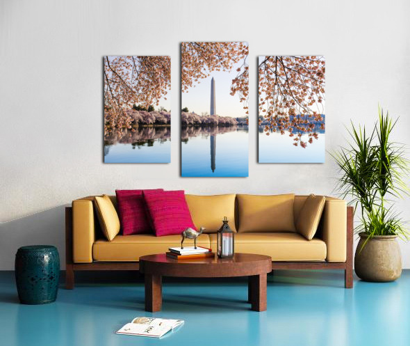 Washington Monument towers above blossoms Canvas print