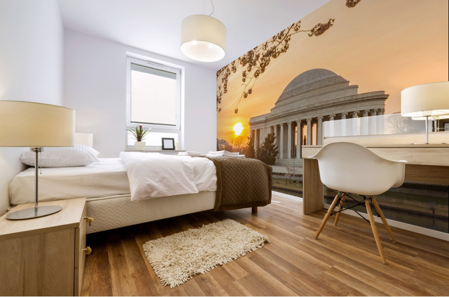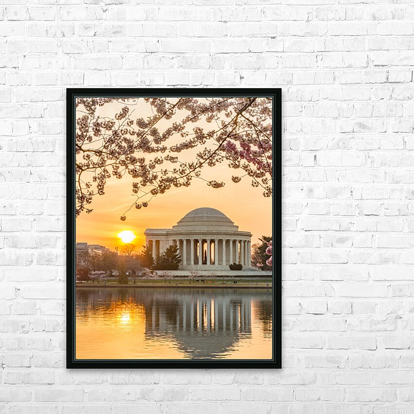 Get this artwork "Sun rising by Cherry Blossoms and Jefferson Memorial" in a framed print.