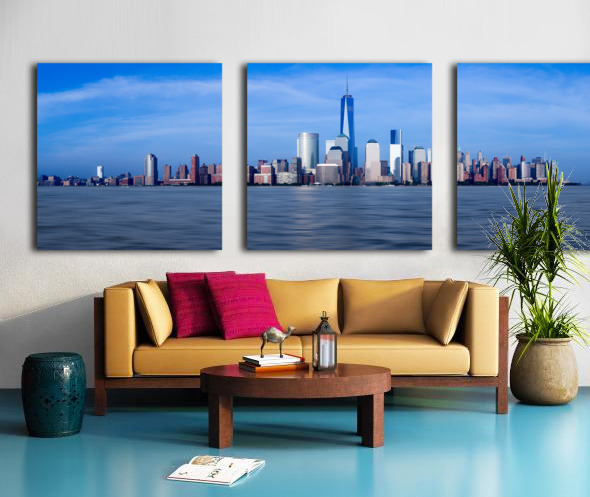 Panorama of Lower Manhattan at dusk Wood print